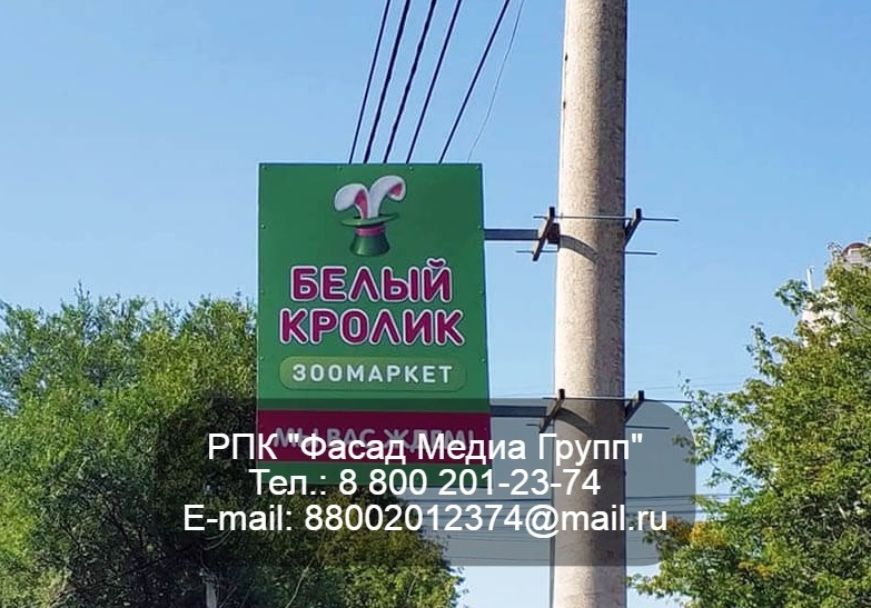 13.06.2022 г. Размещение рекламы на панель-кронштейнах для зоомагазина «Белый кролик»