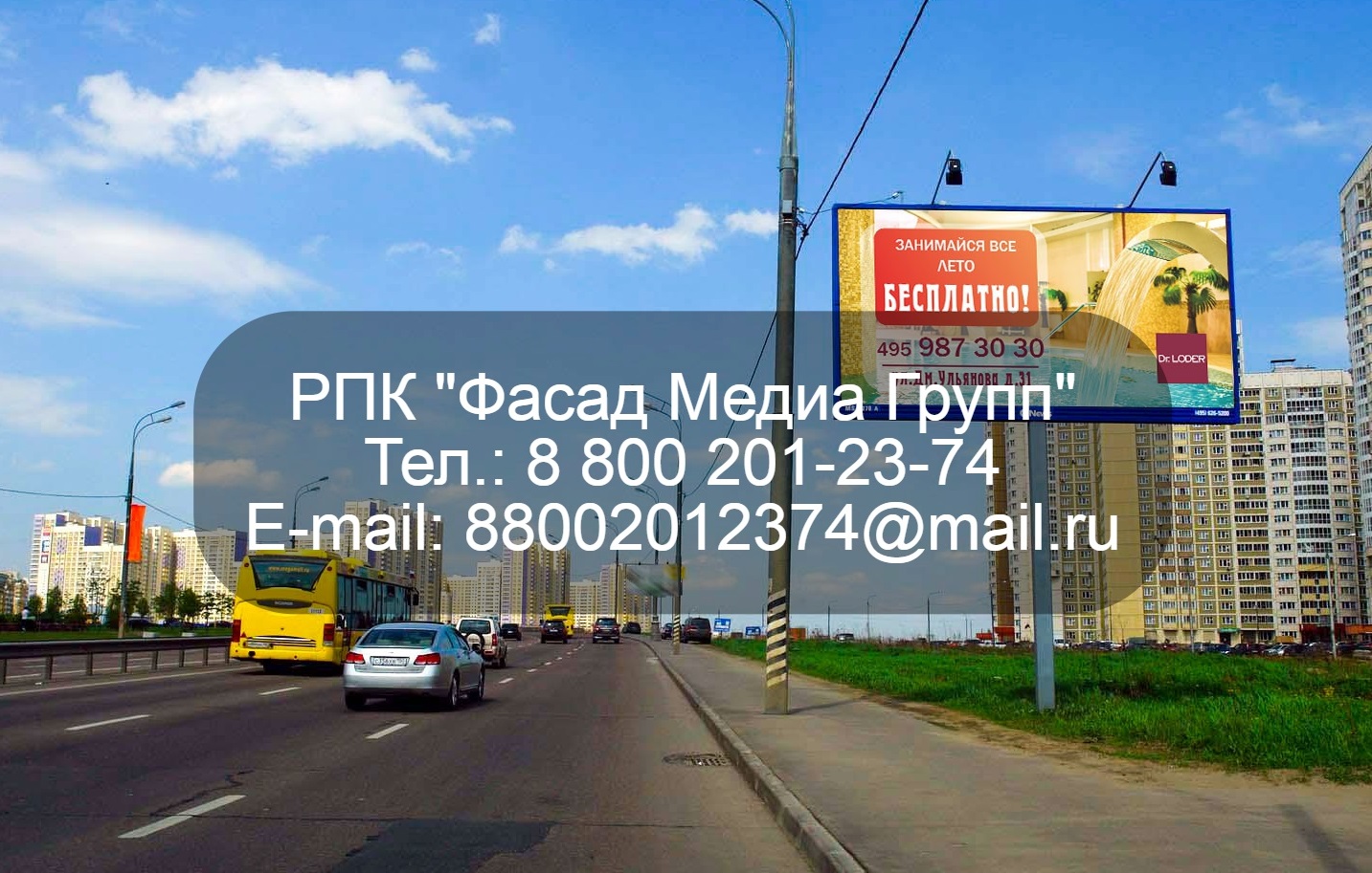Для размещения рекламы на билбордах обращайтесь в РПК «Фасад Медиа Групп» по телефону: 8 800 201-23-74 или отправьте заявку на почту: 88002012374@mail.ru. Будем рады сотрудничеству.