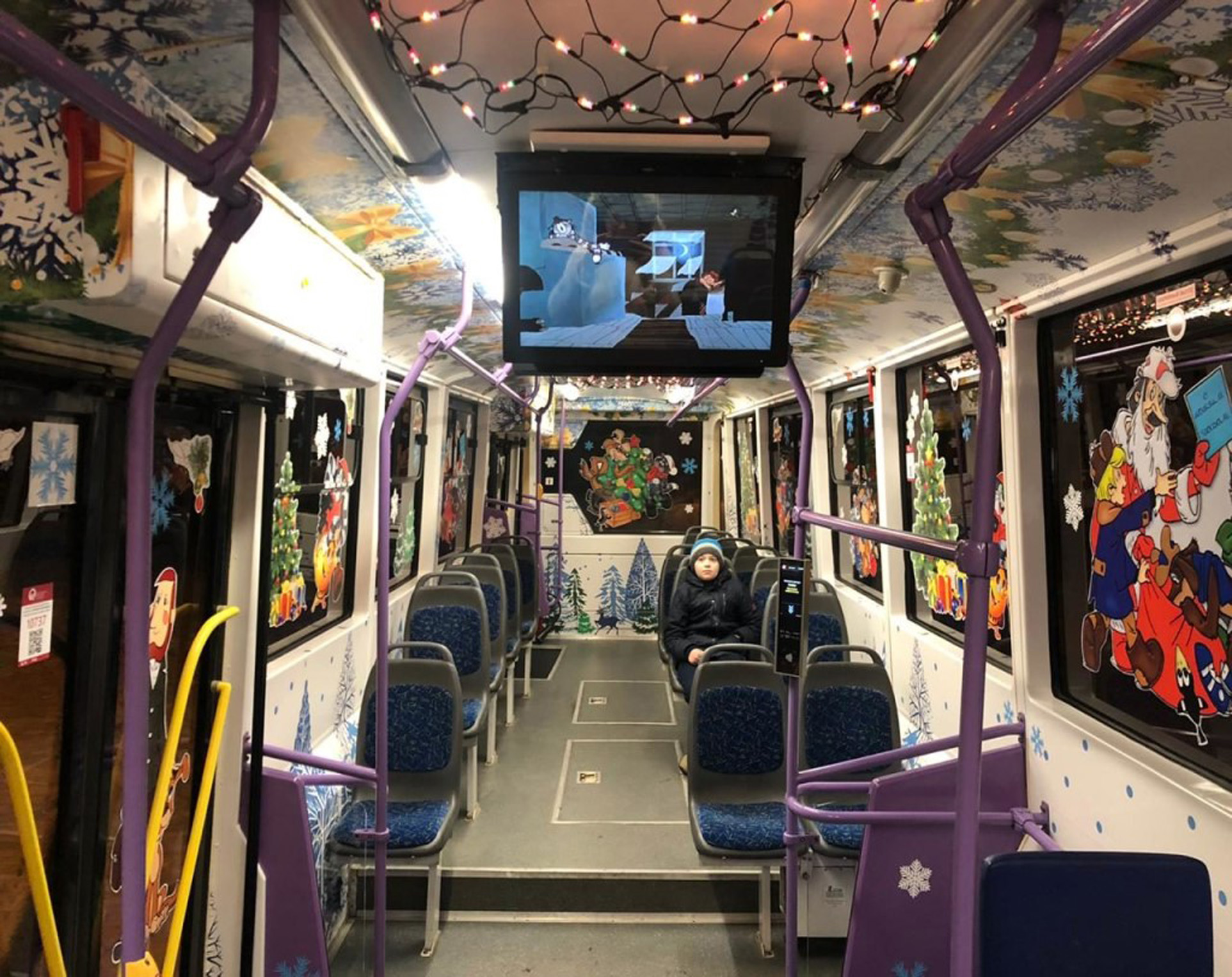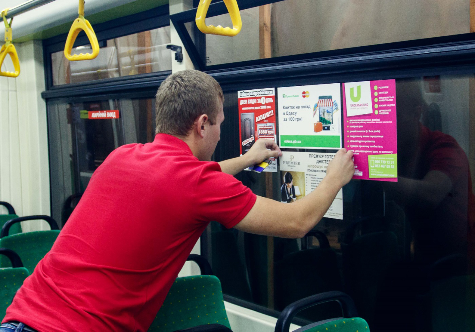 Рекламные стикеры в трамвае на фото выше